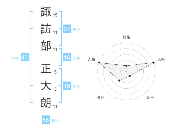 諏訪部 正大朗さんを姓名の画数から五運を鑑定