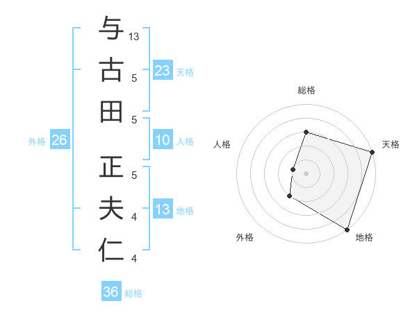 与古田 正夫仁さんを姓名の画数から五運を鑑定