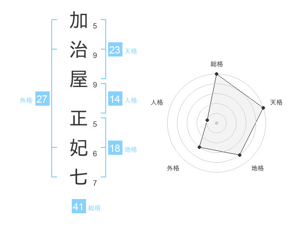 加治屋 正妃七さんを姓名の画数から五運を鑑定