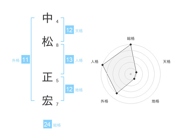 中松 正宏さんの天格は12画の1点!