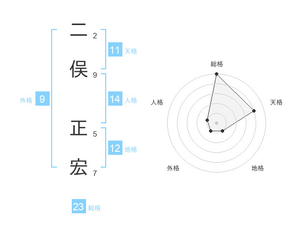 二俣 正宏さんの総格は23画の5点!