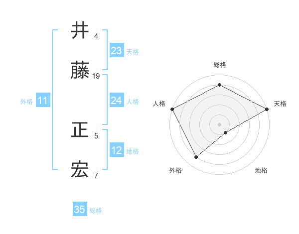 井藤 正宏さんを姓名の画数から五運を鑑定