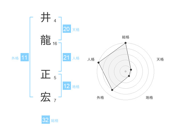 井龍 正宏さんの外格は11画の4点!