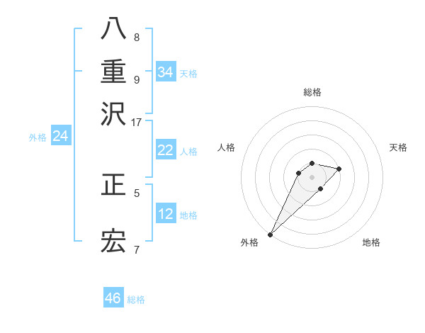 八重沢 正宏さんを姓名の画数から五運を鑑定