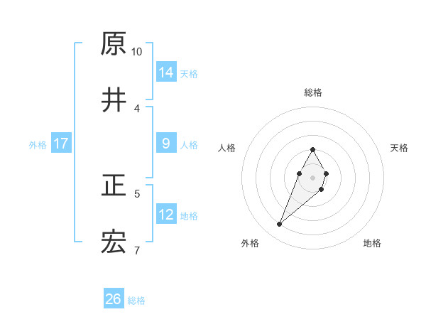 原井 正宏さんの総格は26画の2点!