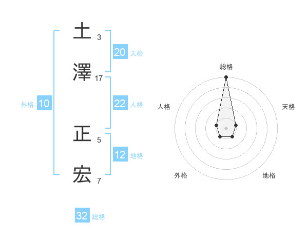 土澤 正宏さんの総格は32画の5点!