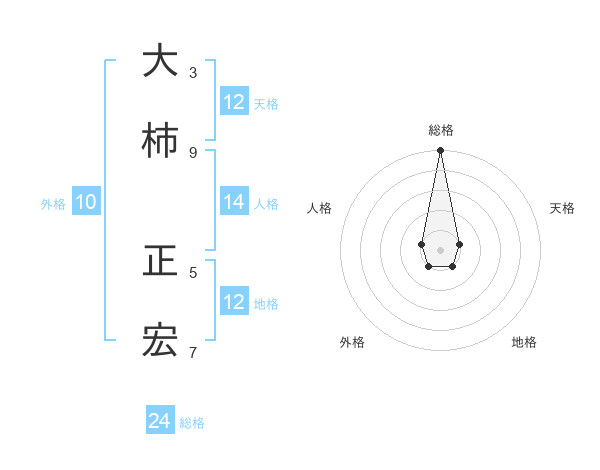 大柿 正宏さんの総格は24画の5点!