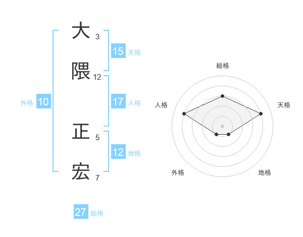 大隈 正宏さんを姓名の画数から五運を鑑定