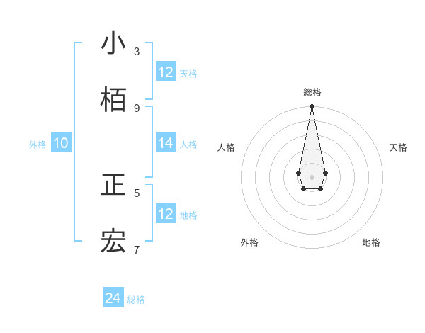 小栢 正宏さんの総格は24画の5点!