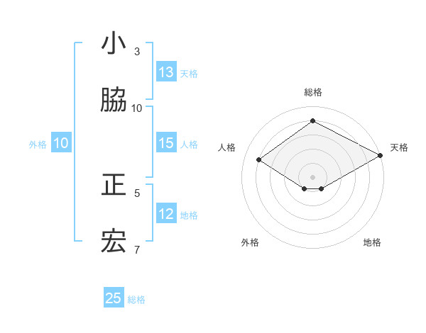 小脇 正宏さんの天格は13画の5点!