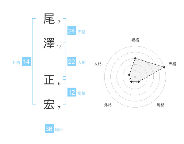 尾澤 正宏さんの天格は24画の5点!