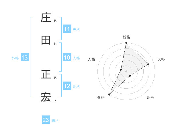 庄田 正宏さんの総格は23画の5点!