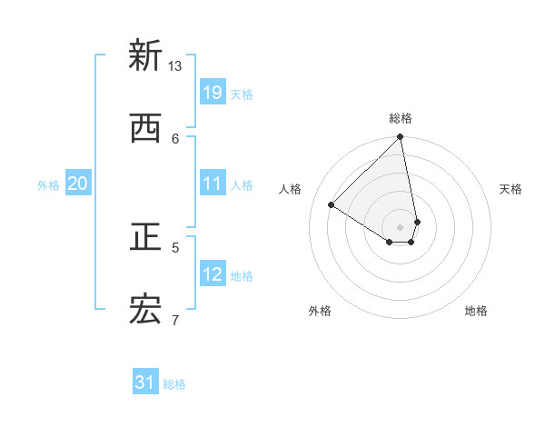 新西 正宏さんの総格は31画の5点!