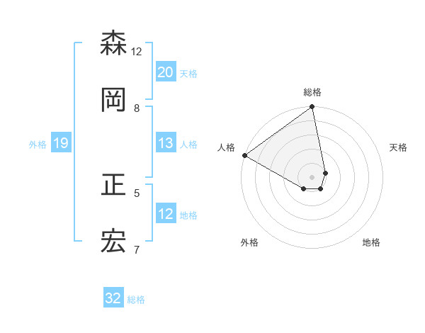 森岡 正宏さんを姓名の画数から五運を鑑定