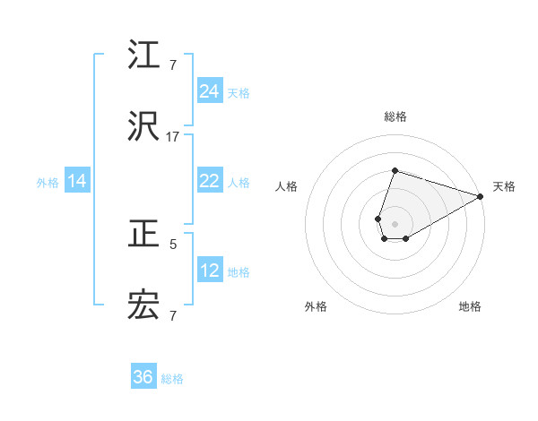江沢 正宏さんを姓名の画数から五運を鑑定