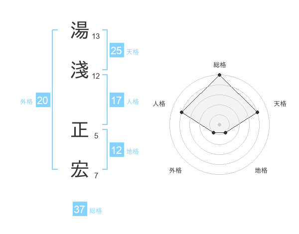 湯淺 正宏さんの総格は37画の5点!
