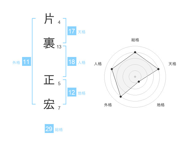 片裏 正宏さんを姓名の画数から五運を鑑定