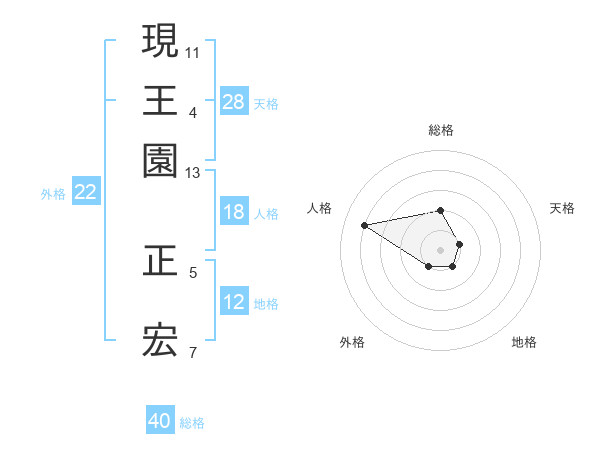 現王園 正宏さんの総格は40画の2点!