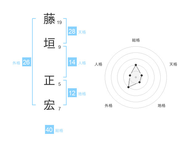藤垣 正宏さんを姓名の画数から五運を鑑定