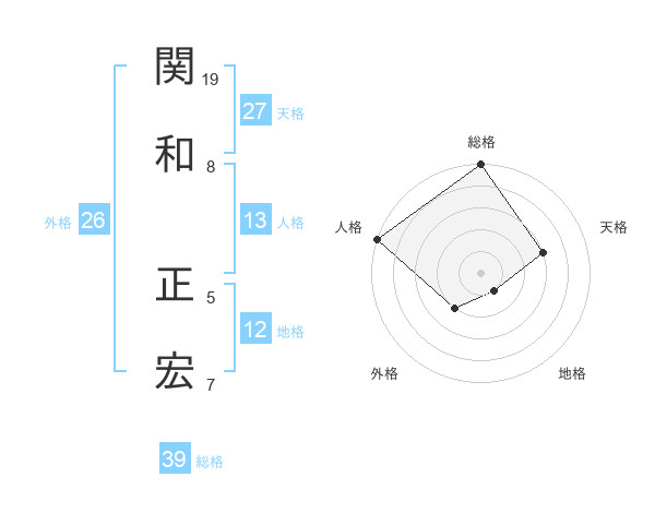 関和 正宏さんの総格は39画の5点!