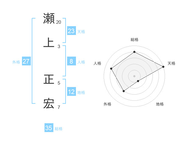 瀬上 正宏さんの天格は23画の5点!