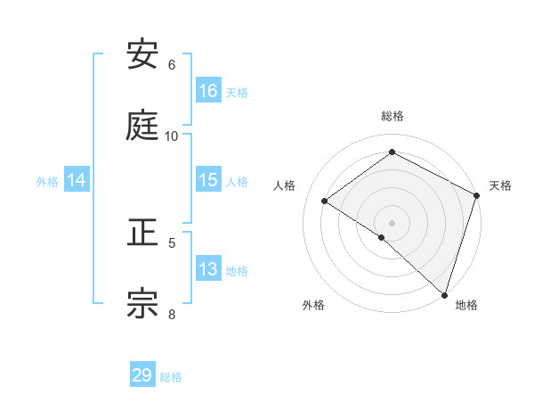 安庭 正宗さんの天格は16画の5点!