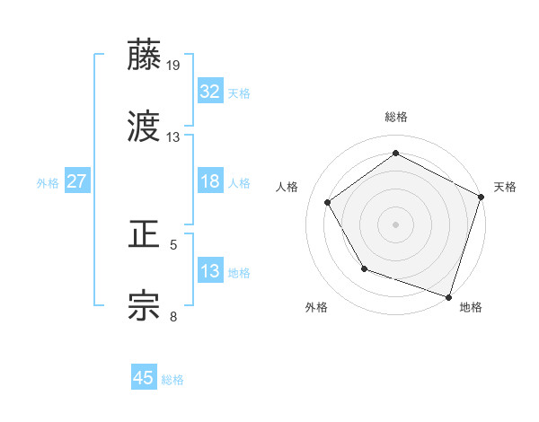 藤渡 正宗さんを姓名の画数から五運を鑑定