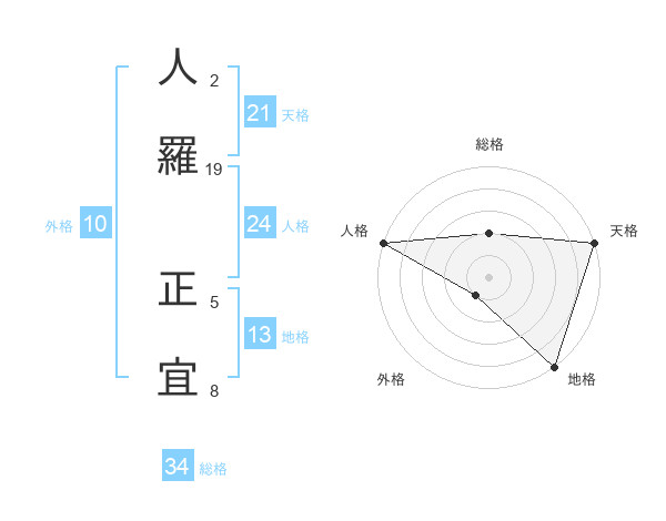 人羅 正宜さんの総格は34画の2点!