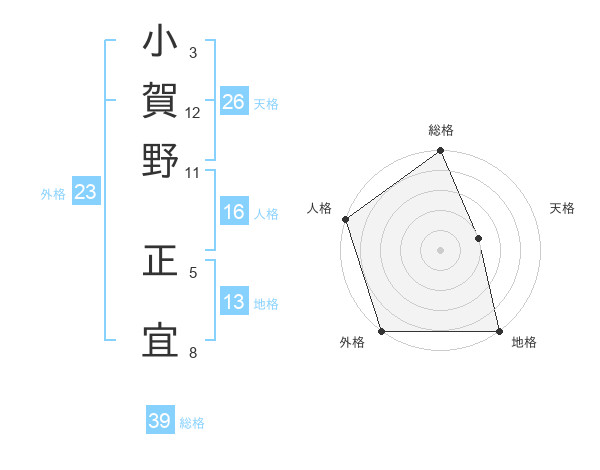 小賀野 正宜さんの総格は39画の5点!