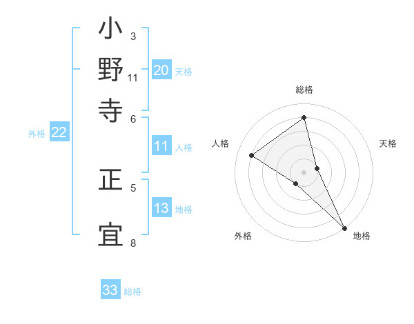 小野寺 正宜さんの総格は33画の4点!