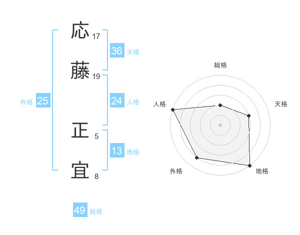 応藤 正宜さんを姓名の画数から五運を鑑定