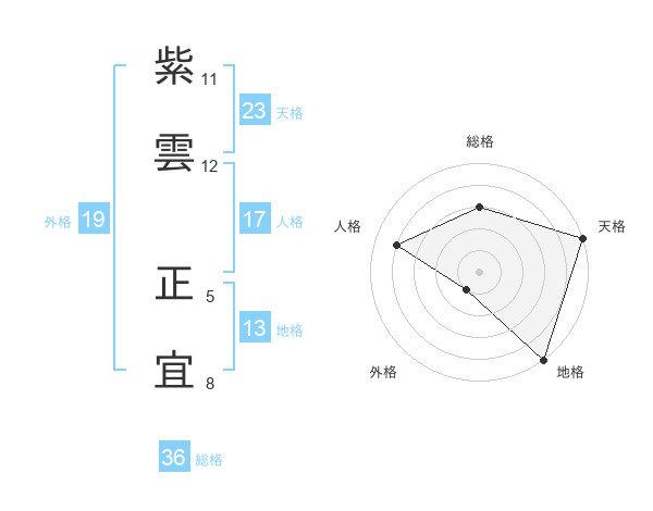 紫雲 正宜さんを姓名の画数から五運を鑑定