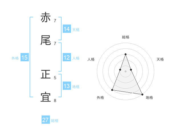 赤尾 正宜さんを姓名の画数から五運を鑑定