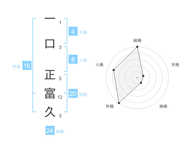 一口 正富久さんの総格は24画の5点!