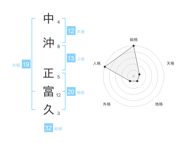 中沖 正富久さんの総格は32画の5点!