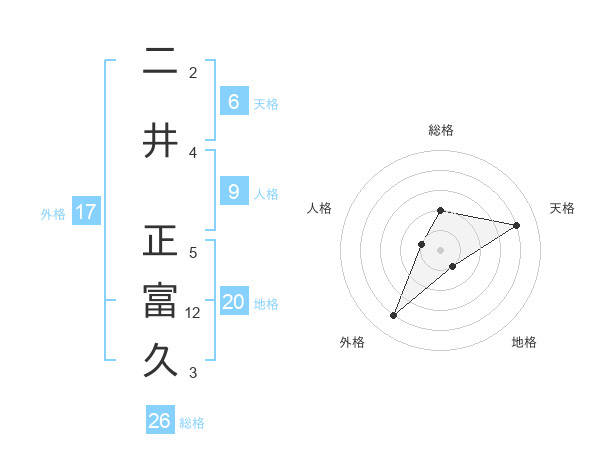 二井 正富久さんの総格は26画の2点!