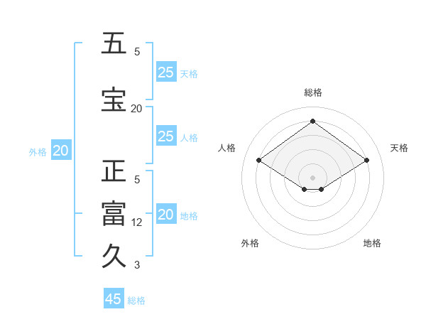 五宝 正富久さんを姓名の画数から五運を鑑定