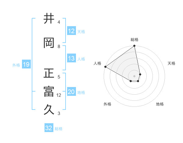 井岡 正富久さんの総格は32画の5点!