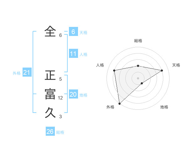 全 正富久さんの外格は21画の5点!