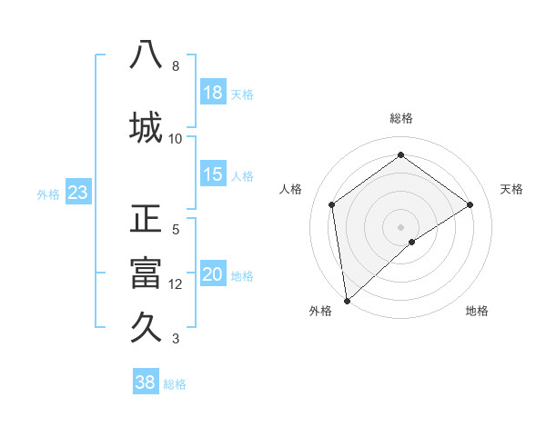 八城 正富久さんの外格は23画の5点!