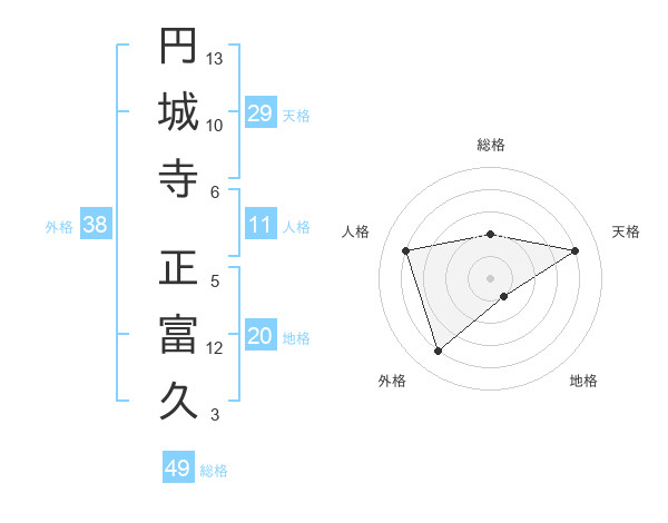 円城寺 正富久さんの総格は49画の2点!