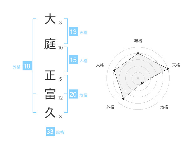 大庭 正富久さんを姓名の画数から五運を鑑定