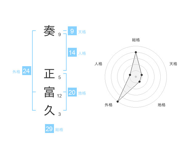 奏 正富久さんの外格は24画の5点!