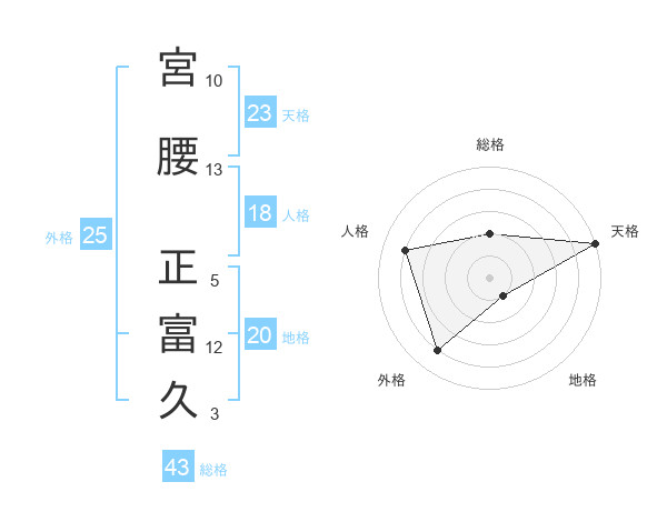 宮腰 正富久さんの総格は43画の2点!