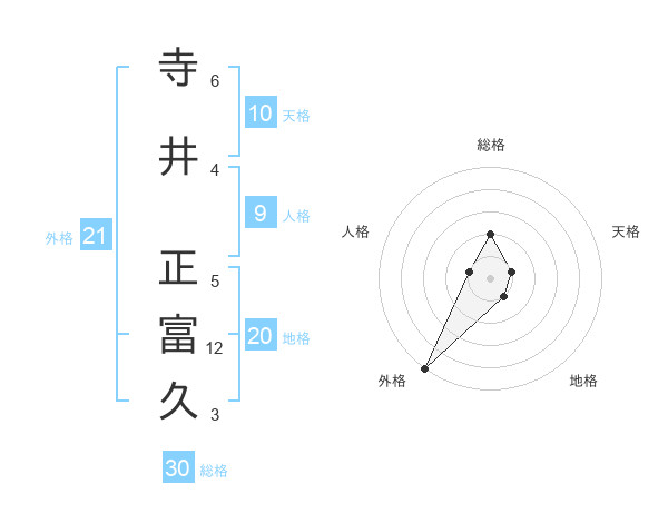 寺井 正富久さんの外格は21画の5点!
