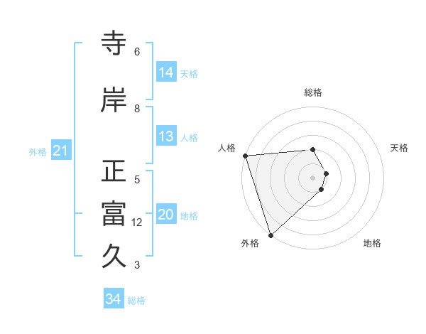 寺岸 正富久さんの外格は21画の5点!