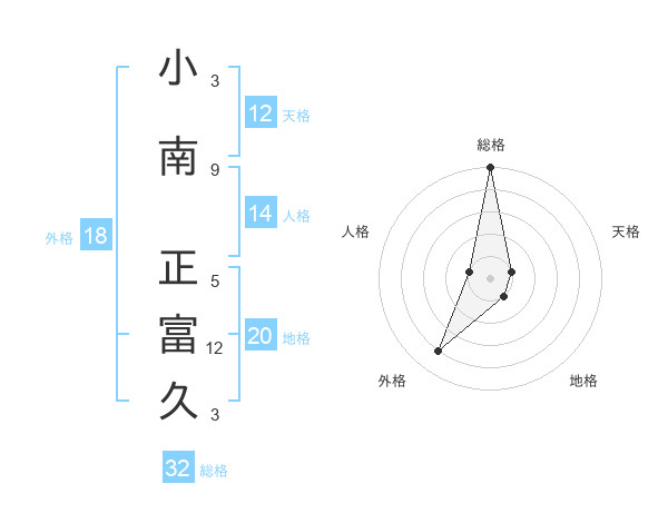 小南 正富久さんの総格は32画の5点!