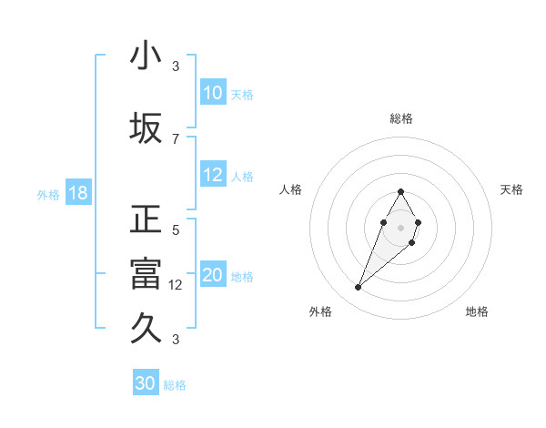 小坂 正富久さんの総格は30画の2点!