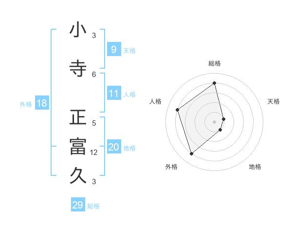 小寺 正富久さんの総格は29画の4点!