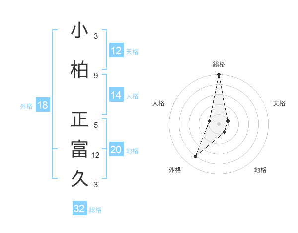 小柏 正富久さんの総格は32画の5点!